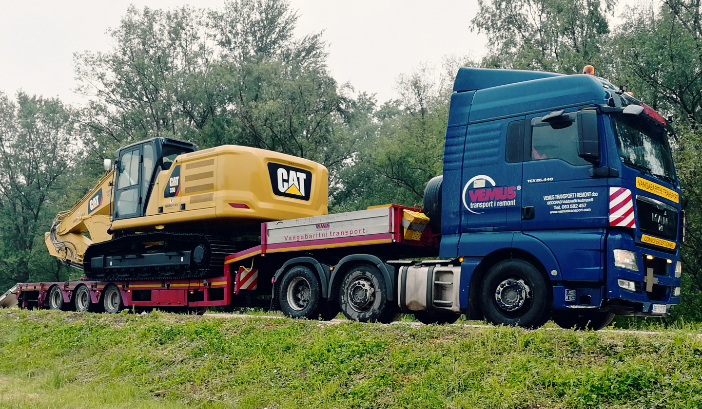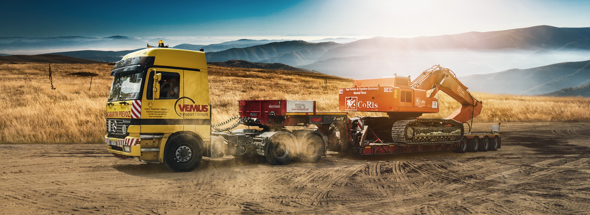 Vangabaritni transport obavljamo NISKONOSEĆIM POLUPRIKOLICAMA nosivosti do 62t, visine od 0.6m i STANDARDNIM POLUPRIKOLICAMA nosivosti do 32t koje su produžive do 18m.